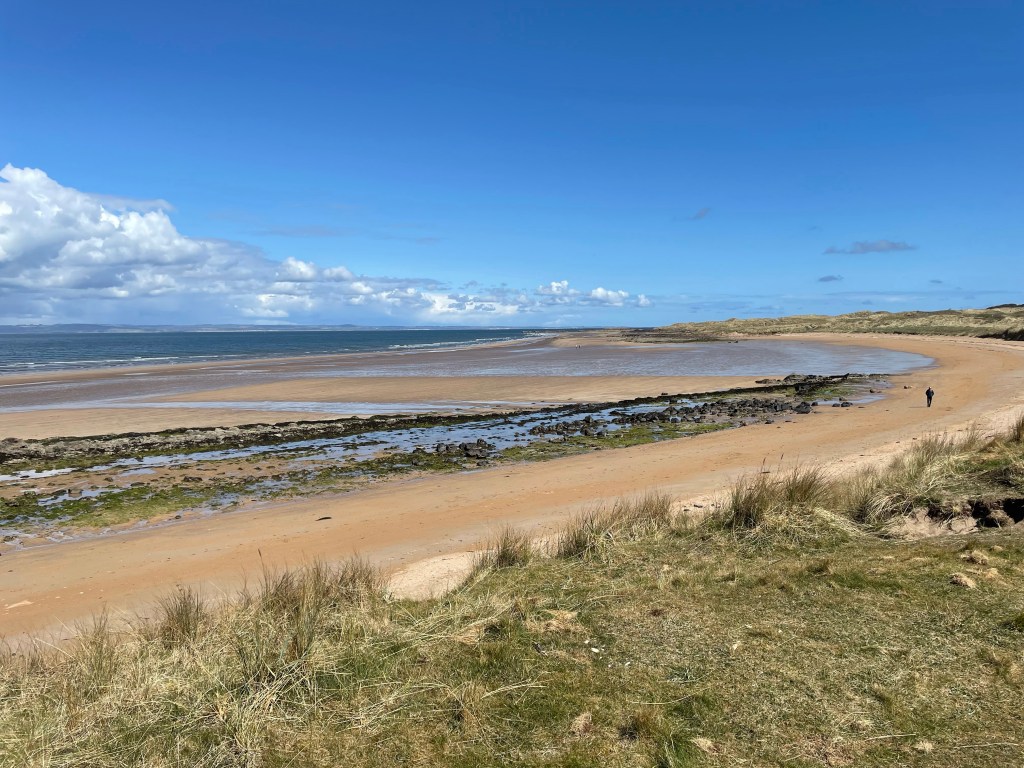 There was a ‘pink’ moon the other night. This a super moon which occurs when the full moon is nearest the earth. The next day the tide was very far out. Wild swimming is a big enthusiasm at the moment but the swimmers had to walk out a very long way today to reach a decent depth of water!